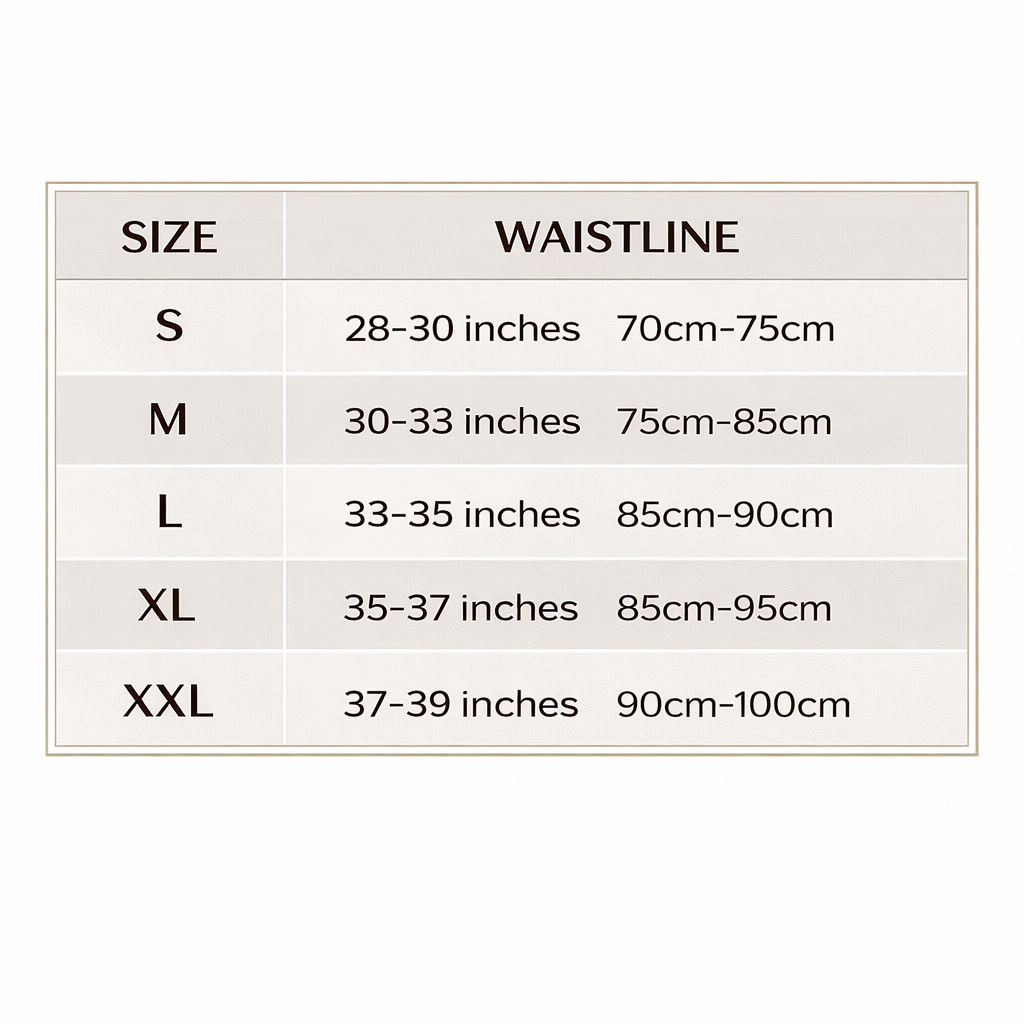 It is fully adjustable and available in sizes S–XXL (approximately 24–46 inches), making it suitable for both men and women. The lightweight, breathable material allows it to be worn under clothing in everyday settings such as at home, in the office, or while traveling.